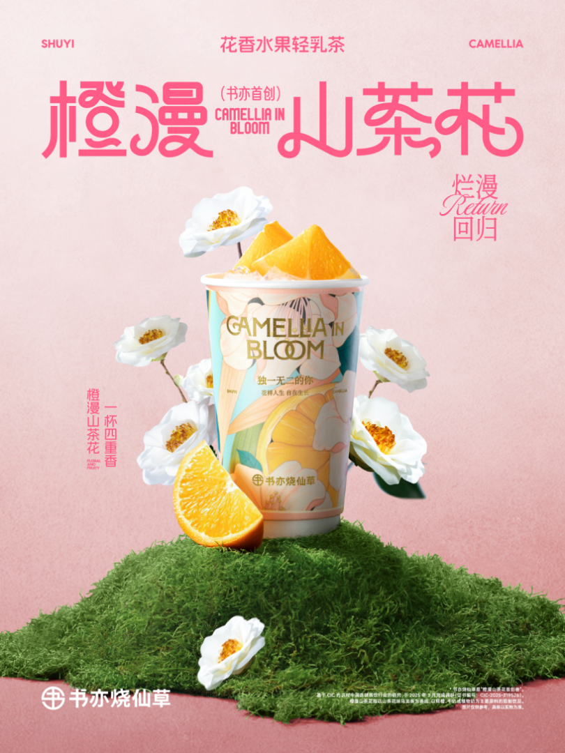 当下,年轻人的茶饮选择,早已超越单纯的口腹之欲,成为生活方式的表达 书亦深谙,现代年轻人需要的不仅是一杯解渴的饮料,更是一个能够满足情绪、口感、健康等多方位需求的社交货币此次“橙漫山茶花”经过书亦研发团队上百次精心调试,通过现制工艺,找到茶、奶、花、果四重香气的黄金平衡点,实现对书亦产品“有料”基因的创造性转化,将清爽、悠长、馥郁与新鲜、有生命力结合,重新定义了花香水果轻乳茶的感官维度。