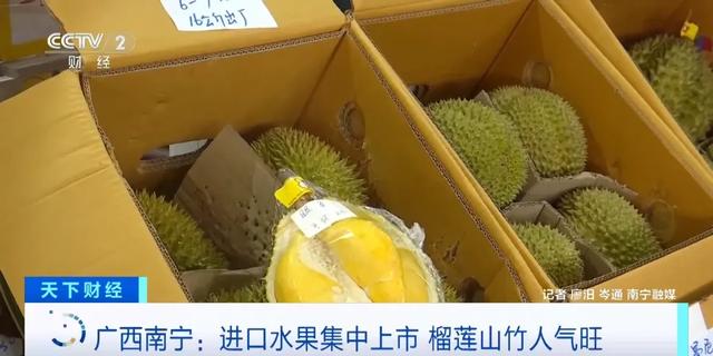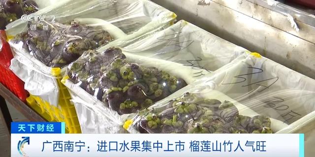 眼下,来自东南亚地区的榴莲、山竹、椰子等热带水果进入了销售旺季这两天,记者在广西南宁最大的水果批发市场看到,市场内各个水果档口人潮涌动,前来选购的市民和商贩络绎不绝在广西海吉星农产品国际物流中心,记者看到,每个榴莲货柜前面,挤满了前来进货的商贩,交易十分火爆。
