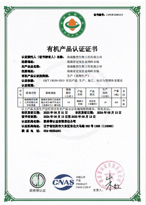 4.坚持每年定期原产地检测并不定期抽查,守护有机诺丽果每一步成长; 5.需3年观察期后,方可正式获中国有机诺丽果原料认证。由于诺丽果有机种植生产周期长,因此每年产量也十分有限。