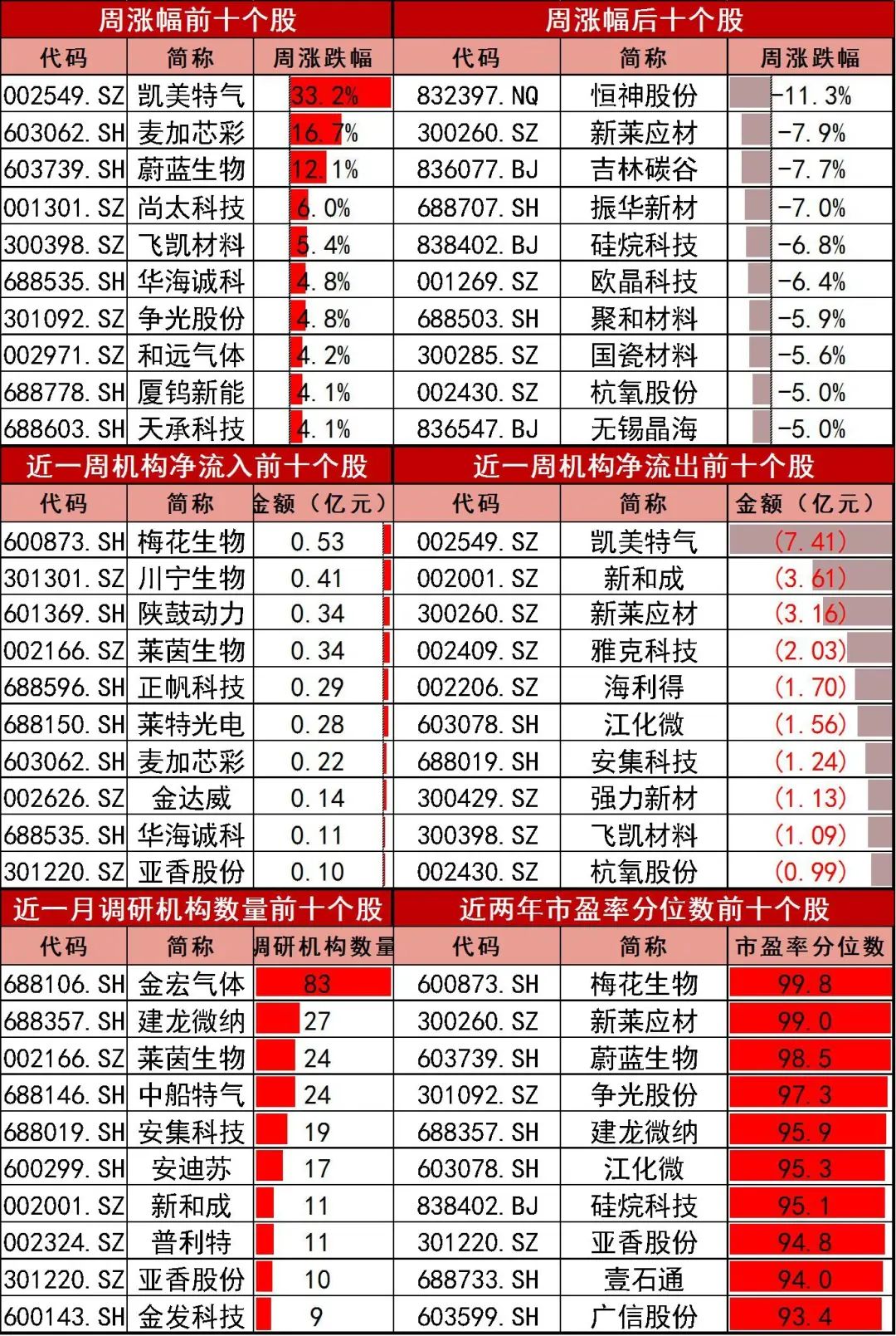 梅花生物(0.53亿)、川宁生物(0.41亿)、陕鼓动力(0.34亿)、莱茵生物(0.34亿)、正帆科技(0.29亿)等,净流出较多的个股包括凯美特气(-7.41亿)、新和成(-3.61亿)、新莱应材(-3.16亿)、