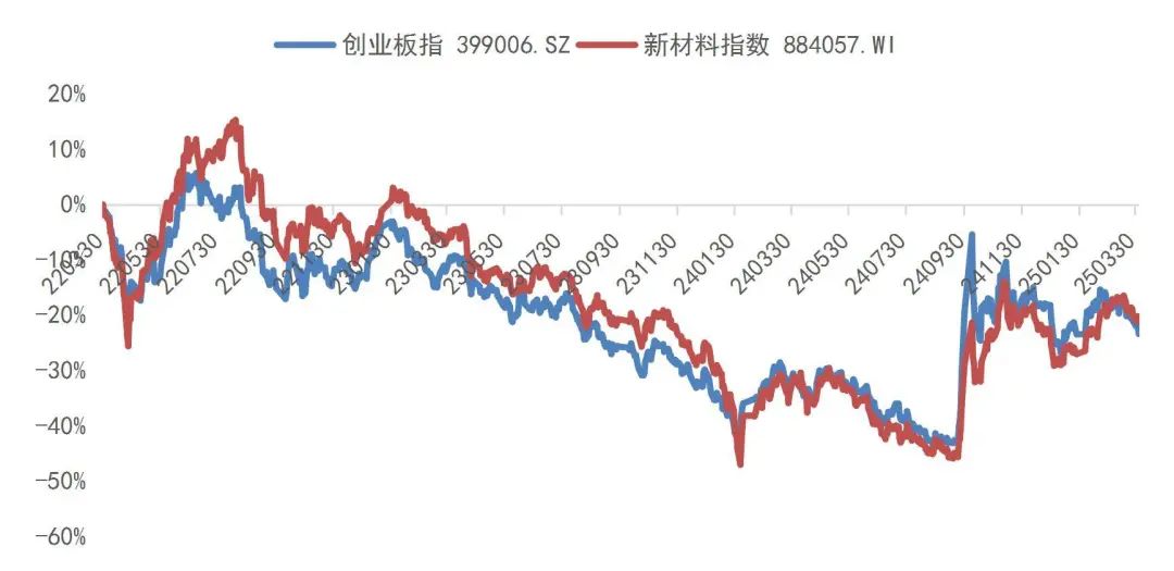 资料来源:Wind,山西证券研究所图2:近三年创业板指与新材料指数走势