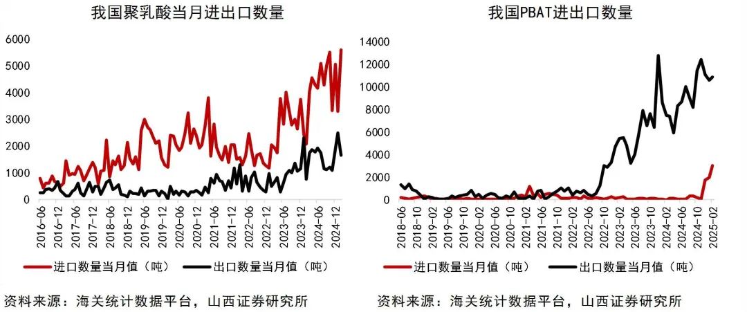 2025年2月,聚乳酸进口均价为2307.67美元/吨,环比下降6.19%;出口均价为2281.32美元/吨,较上月下降5.24%聚乳酸进口5565吨,较上月上升69.89%;出口1631吨,较上月下降34.32%;2025年2月,PLA进口数量同比增加170.0%,出口数量同比减少-34.3%,进口平均单价16809元每吨,环比减少1062元,出口平均单价16617元每吨,环比减少873元。
