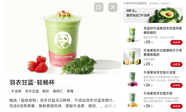 各大茶饮品牌纷纷推出羽衣甘蓝系列产品 图片来源:平台截图2025年春季,“超级食物”的概念变得更“卷”《每日经济新闻》记者采访获悉,伴随“轻养生”概念兴起,越来越多的消费者在选择饮品时,愈发钟情于“内含”丰富的,特别是“超级食物”(即营养密度高、富含抗氧化剂、维生素、矿物质等的食物),如羽衣甘蓝、姜黄、奇亚籽等。