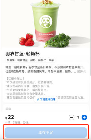 消费者欲购买却遇库存不足 图片来源:受访者供图如今,茶饮品牌掀起了新一轮的“健康内卷”继喜茶在去年推出的羽衣甘蓝奇亚籽“纤体瓶”成为爆款后,口感不好、名字奇特的多款食物成为今年各大茶饮品牌争相推出的新品原料,单杯价格动辄二三十元,不少消费者直言“又贵又难吃”。